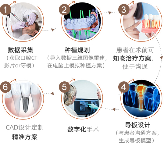 数字化种植是利用计算机图形图像技术,根据口内CT扫描数据以及光学扫描数据在计算机上重建患者颌骨立体模型,医生以此为基础,确定患者种植体嵌入位置、数量、种植深度、角度等,生成科学、精准的导板设计方案,将种植设计准确地转化到手术操作中,最后配上数字化种牙手术专用的手术工具、结合患者自身的情况制作修复体,完成种植治疗。